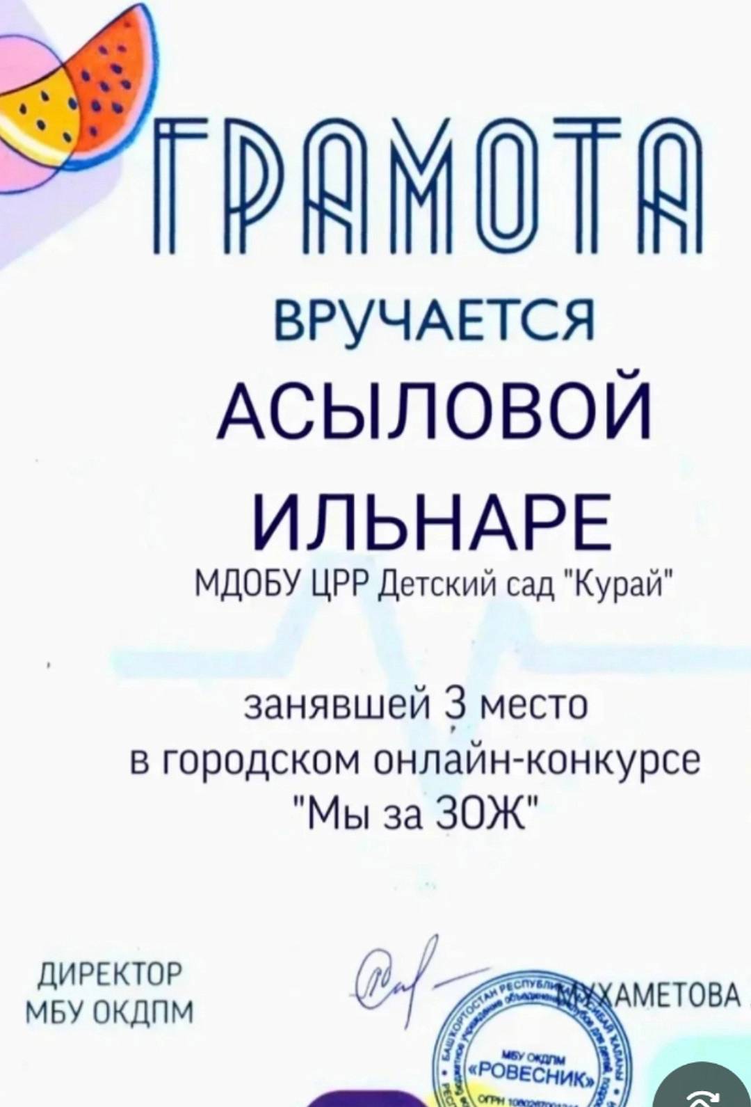Воспитанница группы "Звездочки" Асылова Ильнара (руководитель Хасаева Г.З.) заняла III место. Поздравляем! Желаем дальнейших творческих успехов!